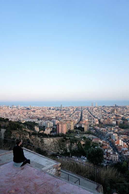 Für den letzten Abend ließ ich mir einen Geheimtipp geben. Naja, so geheim ist es wohl nicht mehr, aber trotzdem weniger überlaufen als beispielsweise der Park Güell, um den Sonnenuntergang über der Stadt zu genießen. Die Rede ist von Bunkers del Carmel – Turó de Rovira. Dabei handelt es sich um eine alte Bunkeranlage im Norden der Stadt. Sie befindet sich östlich vom Park Güell und ist ein romantischer Platz. Nach dem steilen Aufstieg hat man eine traumhaft schöne Sicht über Barcelona. Wir machten uns Guacamole, kauften Baguette und etwas zu trinken und schauten zu, wie die Sonne die Stadt in ein gold-gelbes Licht tauchte. Ein wunderbares Ende für meine 48 Stunden in Barcelona.