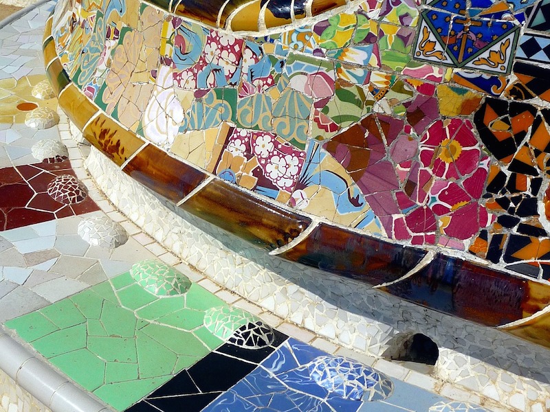 Auf welchem Wege auch immer am Park angekommen, muss man sich überlegen, ob man bereit ist, den Eintritt für die wellenförmigen, bunten Terrassen zu zahlen. Auf den meisten Postkarten finden man diese bunten Mosaikgebilde. Der Eintritt zum Rest des Geländes ist aber kostenlos und der Besuch des von Antoni Gaudí in den Jahren 1900 bis 1914 erschaffenen Parks lohnt sich definitiv auch so. Man hat von den unterschiedlich hoch gelegenen Terrassen einen schönen Blick auf die Stadt und desto höher man gelangt, desto weniger Menschen halten sich dort auf. Auch wenn es nach oben hin immer leerer wird, muss man aber sagen, dass es generell kein Ort für Erholungsuchende ist, da es eben eine der Hauptattraktionen der Stadt ist.