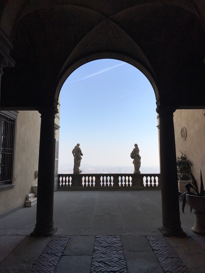 Wenige hundert Meter weiter befindet sich die zweite der Seilbahnstationen und von hier aus gelangt man wiederum binnen weniger Minuten auf den Gipfel des Hügels. Und von hier aus habt ihr den absolut schönsten Blick auf das schnuckelige Bergamo. Rote Dächer und Türme, bunte Häuser, versteckte kleine Höfe und Gärten und die grüne umliegende Landschaft. Wirklich wunderschön und gleichzeitig strahlt dieser Ort eine ungemeine Ruhe aus, sodass es sich einen Moment so anfühlt, als wäre es eine Zeitreise in Tage ganz ohne Stress, Leistungs- oder Termindruck, an denen einfach nur das Hier und Jetzt zählt.