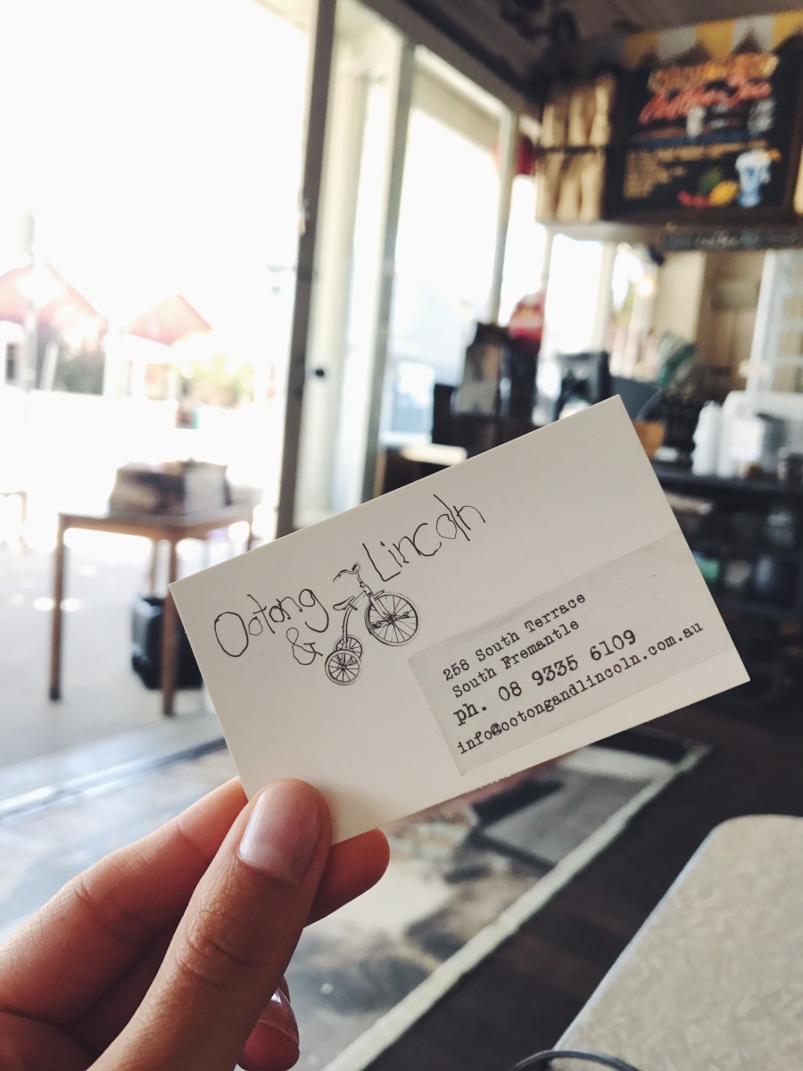 Das im Jahr 2010 eröffnete Ootong & Lincoln bezeichnet sich selbst als einen Ort für Einheimische und Feinschmecker gleichermaßen. Das sonnendurchfluteter und offen gehaltene Lokal besticht seine Besucher mit sehr gutem Kaffe und originellen Frühstücks-, Lunchgerichten und Kuchen. Dabei handelt es sich um hausgemachte und gesunde Speisen, die aus lokalen und saisonalen Produkten hergestellt werden. Das Ambiente in dem Laden ist in meinen Augen einzigartig und Ootong & Lincoln somit definitiv eine Bereicherung für Südfremantle.