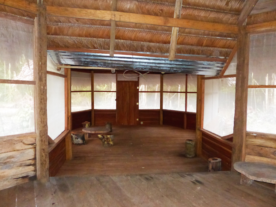 Wir buchten unseren Flug von Bogotá nach Leticiá bereits im Vorfeld in Deutschland. Als der Tag des Fluges anstand, hatten wir Bogotá bereits genauer unter die Lupe genommen und freuten uns tierisch auf unsere Natur-Nah-Erfahrung. Leider erkrankte mein Freund genau an diesem Tag. Mit wahnsinnig hohem Fieber und sehr häufigen Toilettenbesuchen (ähh sorry) hatte er eigentlich keine guten Voraussetzungen für den Flug in das schwül heiße Gebiet des Amazonas. Doch abblasen wollten wir die Sache auch auf gar keinen Fall. Also flogen wir. Schon alleine für den Blick aus dem Flugzeugfenster lohnt es sich dorthin zu fliegen. So viel Grün und Wasser soweit das Auge reicht. Am Flughafen erwartete uns bereits Don, unser „Nachbar“ (er wohnte ca. 3km von uns entfernt, einmal quer durch den Dschungel). Eigentlich stand als Erstes auf dem Plan einzukaufen, allerdings ging es meinem Freund immer schlechter, sodass wir zu meinem großen Leiden entschlossen, ihn erst zur Hütte ins „Bett“ zu bringen. Nach einer 45 minütigen Fahrt mit dem Tuk Tuk und 20 minütigem Fußweg durch den Dschungel, gelangten wir endlich zu unserer Hütte. Klo und Dusche befanden sich draußen. Die Dusche funktionierte natürlich mit Regenwasser. Sonstige Ausstattung: Eine Feuerstelle in der Hütte, ein spärliches Bett, eine improvisierte Küchenzeile zum Vorbereiten des Essens, ein verlassenes riesiges Spinnennetz an der Decke und Holzstämme zum Sitzen. Das war also unser neues Zuhause für die nächste Woche.