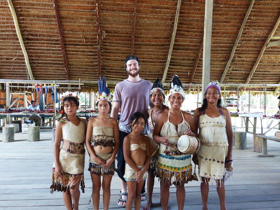 In der Woche, in der wir die Hütte bewohnten, stand außerdem ein Besuch bei Don Zuhause mit Führung durch seinen riesigen „Garten“ an. Dort aßen wir die leckersten Bananen auf Erden und säten eine Ananas. Außerdem gab es noch viele Begegnungen mit unterschiedlichstem Getier, das dort meist nicht gerade klein ist, eine Wanderung durch den Dschungel mit Besuch der Dorfgemeinde und des Hexenmeisters. Dieser wollte und ein reinigendes Ritual anzudrehen. Es stellte sich heraus, dass es sich dabei um die Einnahme von Ayahuasca handelte. Die Dschungeldroge für die einige Touristen das Amazonasgebiet besuchen und welche auch bei einigen Einheimischen hoch im Kurs steht. Nach Einnahme muss man sich wenige Zeit später übergeben und verfällt daraufhin in einen stundenlangen Trancezustand. Wir lehnten dankend ab. Außerdem gab es noch zahlreiche Gerichte, die entweder versalzen oder zu scharf oder beides waren, da ich in der Dunkelheit Probleme mit dem Würzen der Speisen hatte.