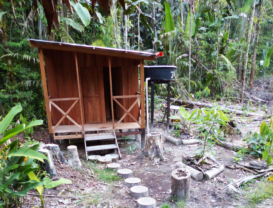 Nachdem ich den Kranken schweren Herzens zurückließ, machten Don und ich uns auf den Rückweg in die Stadt. Don erklärte mir währenddessen alles, was ich wissen musste, um in der Hütte zu überleben. Ich bemühte mich sehr, alles was er mir so eindringlich mitzuteilen versuchte, zu verstehen – allerdings mit nicht allzu großem Erfolg. Mein schlechtes Spanisch könnte ein Grund dafür gewesen sein. Mit einer weiteren Verspätung, aufgrund eines Plattens, kamen wir dann endlich bei dem einzigen Supermarkt der Stadt an und packten alle Taschen voll. Zusätzlich schleppten wir jeder zwei 5-Liter Wassertüten. Wir begaben uns auf den Rückweg und gaben unser bestes nicht zusammenzubrechen bei der schwülen Hitze, die sich mehr und mehr auszubreiten schien. Ich habe glaube ich noch nie so sehr geschwitzt wie an diesem Tag. Armer armer Don, der übrigens genauso so groß ist wie ich, bzw. klein. So um die 1,60m. Nach dieser langwierigen Tortur, konnte mein Freund endlich auch mit Wasser versorgt werden. Ich schaffte es noch gerade bevor es dunkel wurde (gegen 18Uhr) unser Abendessen auf dem mühsam erzeugten Feuer zu kochen, bevor es danach auch schon schnurstracks ins Bett ging.