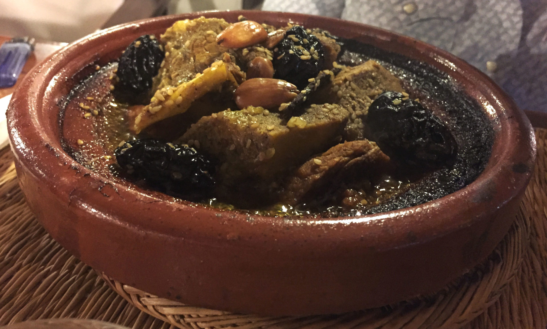 Zu einer Marrakeschreise gehört definitiv auch das Probieren der lokalen Speisen und Getränke. Dazu zählen unweigerlich Couscous, eine Tajine („Die Tajine, Tagine oder auch Tadschiin bezeichnet in der nordafrikanischen Küche sowohl ein rundes, aus Lehm gebranntes Schmorgefäß mit gewölbtem oder spitzem Deckel als auch das darin gekochte Gericht.“) und ein frisch zubereiteter marokkanischer Minztee.