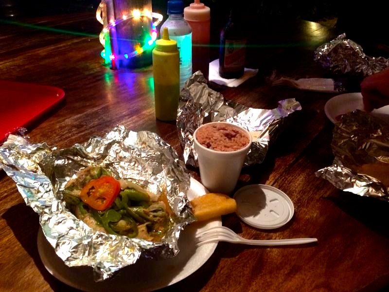 Zu lokalem Bier bestellten wir von allem etwas. Etwas verwundert darüber, dass die freundliche Kellnerin alles in Alufolie eingewickelt brachte, probierten wir uns durch. Jerk Chicken, Jerk Pore, Red Stripe, Yams, Yucca, Fisch, Fleisch, unterschiedlichste scharfe Saucen – es war alles ein Genuss.