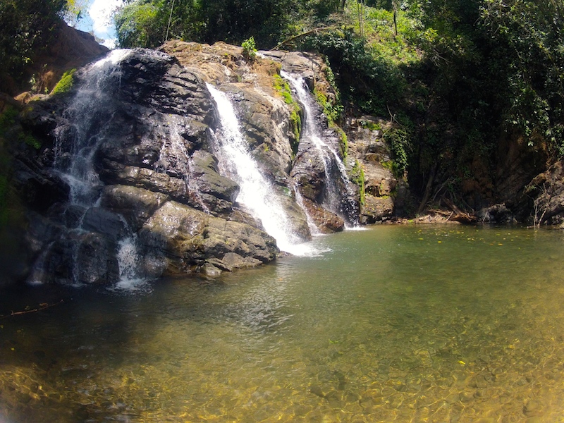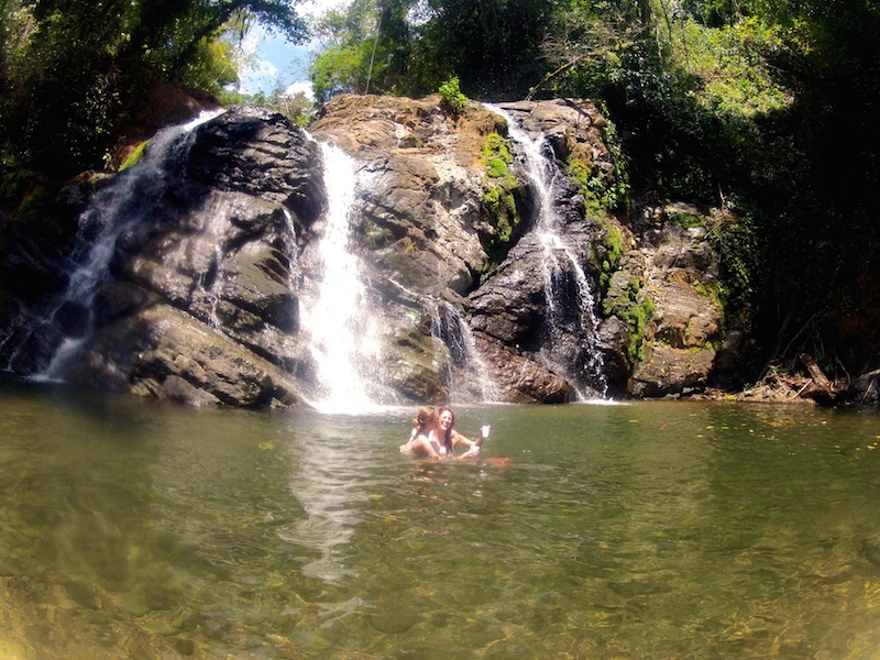 Dadurch, dass wir nur zu viert waren und unsere beiden Begleiter ja wie bereits erwähnt etwas höheren Alters waren, hatten wir etwas Bedenken, die Tour könnte eher einer ruhigen Paddelboottour ähneln. Entgegen unserer Erwartungen war es aber doch richtig lustig. Wir bekamen Schwimmwesten und teilten uns auf 2 Boote auf. Pro Boot ein Guide. Nach den ersten Minuten hatte auch ich keine hektischen Flecken mehr und begann das „Abendteuer“ zu genießen. Nach der ersten Stunde Rafting mit kleineren und mittelgroßen Stromschnellen und ein paar Malen Abkühlung, da was Boot kippte, hielten wir an einem Wasserfall, um dort ein paar Snacks zu bekommen. Die Landschaft war traumhaft und wir genossen das einsame Baden im Becken des Wasserfalls bei strahlendem Sonnenschein in vollen Zügen.