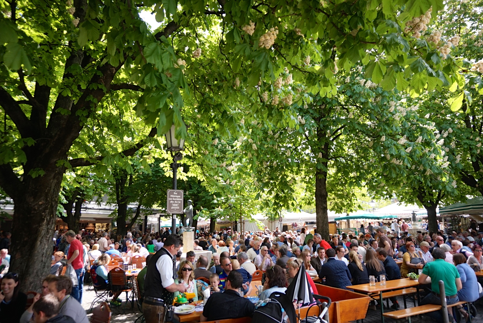 Eines der tollsten Dinge in München sind meiner Meinung nach die Biergärten, in die man sein eigenes Proviant mitbringen darf. Ich wusste vor meinem Aufenthalt in München nicht, dass dies dort mehr als üblich ist. Nach traditionellem Verständnis zeichnet sich ein „echter“ Biergarten dadurch aus, dass man sein eigenes Essen, nicht aber Trinken mitbringen darf. Dieses wird am Ausschank ausgegeben, an welchem man es sich bei einem Besuch holen muss. Natürlich gibt es Abweichungen. Trotzdem eine wirklich schöne Art zusammenzusitzen. Unseren letzten Abend in München verbrachen wir so. Jeder brachte etwas mit, sodass wir eine nette Brotzeit hatten und das erfrischende Bier holten wir uns – natürlich in 1-Liter-Maßkrügen – am Ausschank. Prosit!!