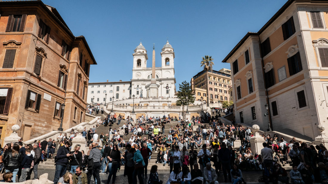 Die Spanische Treppe ist leider oft in Restauration. Wenn sie gerade nicht restauriert wird, kann man sie auch hinaufsteigen oder sich mit einem Snack darauf setzen und eine Pause vom Sightseeing einlegen. Außerdem lässt es sich hier ausgezeichnet entspannen und ganz nebenbei das rege Treiben und die vielen Menschen aus aller Welt beobachten. Direkt daneben sind die teuren Einkaufsstraßen mit den bekannten italienischen Marken, wie Botega Venta, Emilio Pucci oder Prada.