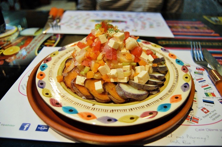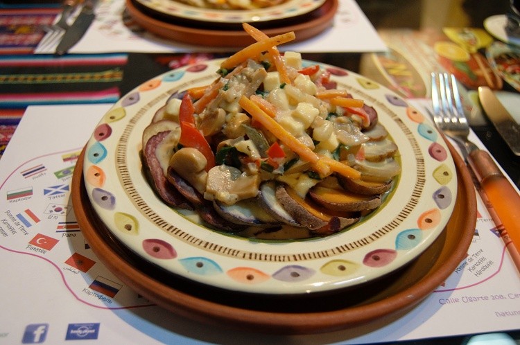 Im Hatunpa kommen Kartoffelfans auf ihre Kosten. Die Grundlage jeder Speise sind in Scheiben geschnittene, gekochte Kartoffeln unterschiedlichster Sorten. Sein „Topping“ kann man sich aussuchen oder selbst zusammenstellen. Von vegetarisch bis fleischreich und mit verschiedensten Soßen kann man seine Kartoffeln belegen lassen. Um die Wartezeit zu verkürzen, hatte der freundliche Besitzer eine schöne Idee. Als Tischsets bekommt man ein Papier mit unzähligen Flaggen. Wer eine bestimmte Anzahl richtig beschriftet bekommt seine Getränke umsonst. Süße Idee und nette Wartezeitverkürzung.