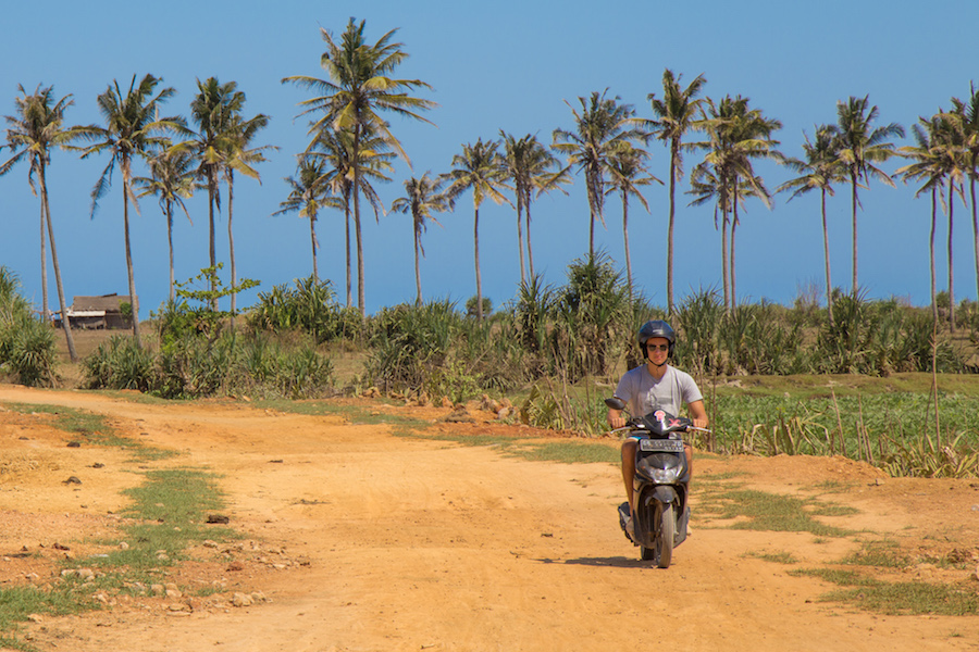 Wenn man etwas mehr von der Insel sehen möchte, kann man sich einen Scooter für ca. 40.000 IDR ( 2,60 Euro) am Tag mieten und an Affen, Kühen und Co. vorbei ab in die Berge fahren. Die holprige Scootertour hat schon fast etwas von einer Safari und gibt einem einen Einblick in das traditionelle Leben in Indonesien. Dinge wie das Besitzen eines internationalen Führerscheins oder das Tragen eines Helmes sind hier Nebensächlichkeiten, die wirklich keinen interessieren.