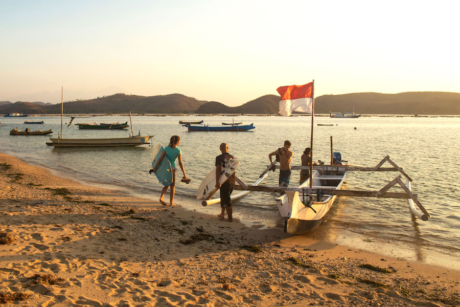 Unser Hotel bzw. Homestay war das Surf Garden Gerupuk, das direkt an einem Bootanlegeplatz in einem Berghang liegt und einen unglaublich schönen Ausblick auf die Bucht bietet. Von dort kommt man in wenigen Minuten zu den Surfspots von Gerupuk. Für ein Boot zahlt man im Schnitt 100.000 IDR (ca. 6 Euro) pro Stunde, unabhängig von der Personenanzahl. Ein Surfboard für den ganzen Tag zu leihen kostete mich ca 100.000 IDR, wobei das bei mehreren Tagen oder Kombiangeboten einer Surfschule nochmal günstiger werden kann. Von den kleinen bunten Fischerbote, die einen direkt zu den Wellen fahren, muss man dann nur noch mit seinem Surfboard ins glasklare Wasser springen. Alleine das ist ein Erlebnis für sich und eine Erfahrung, die man nicht in allzu vielen Ländern machen kann.