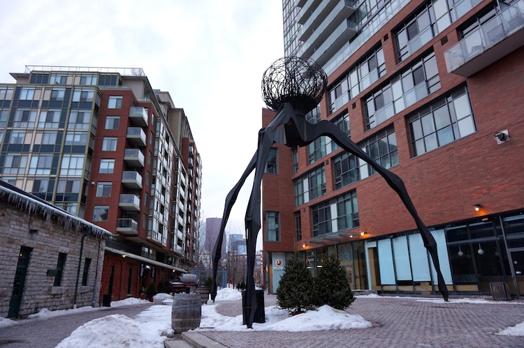 Nach einem kleinen Mittagessen ging es weiter in Richtung Distillery District im Osten der Stadt. Wir hatten die Entfernung etwas unterschätzt und so dauerte der Marsch dorthin fast eine Stunde. Am Ende war ich aber mehr als froh, den Weg dorthin auf mich genommen zu haben, denn das Viertel entpuppte sich zu einem der schönsten Plätze der Stadt für mich. Hier gibt es viele trendige Vintageshops, Bars und Restaurants. Außerdem ist es sehr interessant zu sehen, wie sich aus einem verfallenden Industriegelände eine so szenige Gegend entwickelt hat.