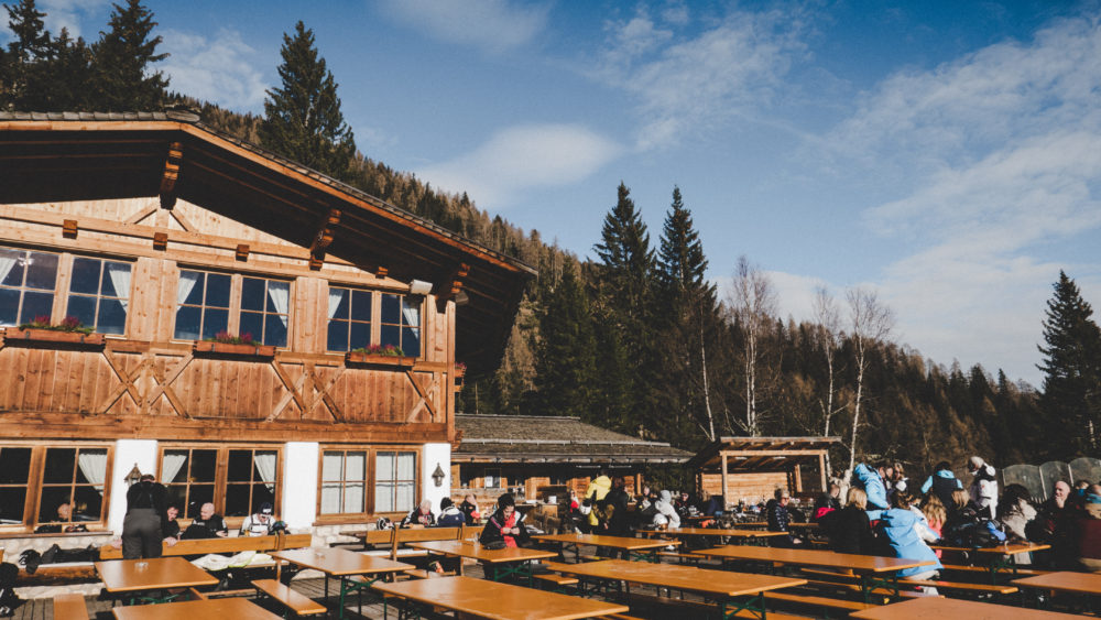 Eine weitere eher trendige Hütte, ist die „Baita Gardoné – The Mountain Riviera„. Der perfekte Ort, um sich die Wintersonne bei einem Glas Wein und leckerem Essen ins Gesicht scheinen zu lassen.