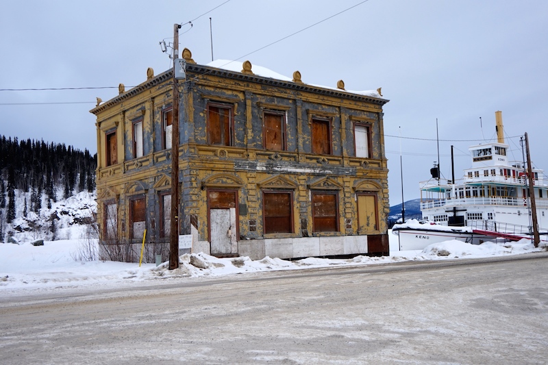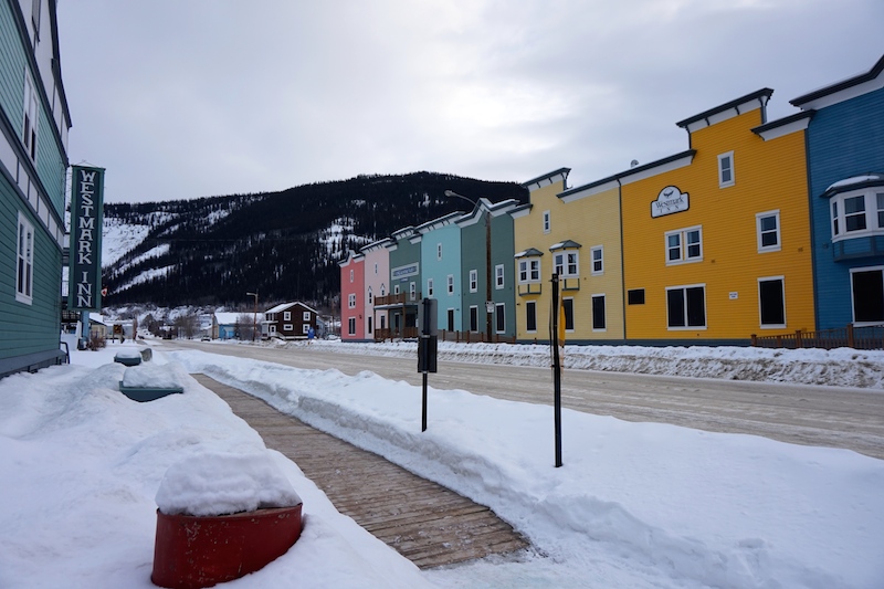 Dawson City ist ein verrückter Ort etwa 500km nördlich von Whitehorse. Als nördlichsten Punkt meiner Reise in Kanada verbrachte ich 1,5 Tage dort. Die ganze Stadt versprüht eine einmalige Atmosphäre. Man hat das Gefühl eine Zeitreise ins 19. Jahrhundert zu machen und Teil des Goldrauschabenteuers zu sein. Die ganze Stadt ist ein Museum für die schönsten Pionierbauten – die perfekte Kulisse für einen Western. In der Goldgräberstadt leben rund 1.200 Menschen und rundherum ist nichts außer kanadischer Wildnis. Vor allem auf der Front Street, welche entlang des Yukon Rivers verläuft, bekommt man das Gefühl einen Zeitsprung zu machen und sich genau das Leben in Dawson City vor rund 120 Jahren vorstellen zu können.