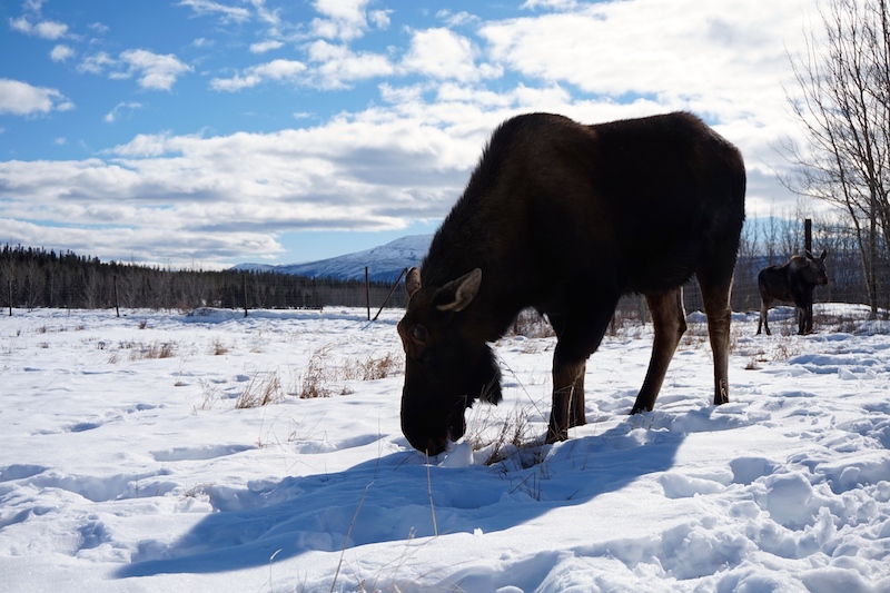 Wer Yukon im Winter bereist, muss schon Glück haben um eine Vielzahl an Tieren erblicken zu können. Da ich mir diese Erfahrung trotzdem nicht nehmen lassen wollte, besuchten wir am Ende unseres Trips durch Yukon das Yukon Wildlife Preserve. Dort kann man entweder per Bus oder zu Fuß einem etwa 5km langen Weg entlang der Gehege folgen. Es gibt 11 unterschiedliche Tierarten. Man bekommt Waldkaribus, den kanadischen Luchs, Rocky Mountain Elche, Bergziegen, Maultierhirsche, Moschusochsen, Waldbisons, zwei unterschiedliche Arten von Schafen und Polarfüchse zu Gesicht. Der Eintritt kostet 15$ und es ist auf jeden Fall eine nette Nachmittagsbeschäftigung.